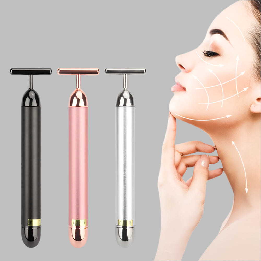 The 24K Gold Roller Vibrating Facial Massager is designed to enhance skin beauty and provide a relaxing, rejuvenating experience. It features a vibrating massage function that helps firm and tighten the skin while reducing wrinkles and improving circulation. The luxurious 24K gold finish adds an elegant touch, making it a premium tool for facial skincare.