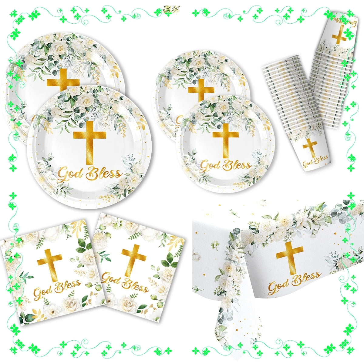 God bless baptism plates and napkins, first communion party supplies, cross baptism celebration, baby shower utensils, party supplies