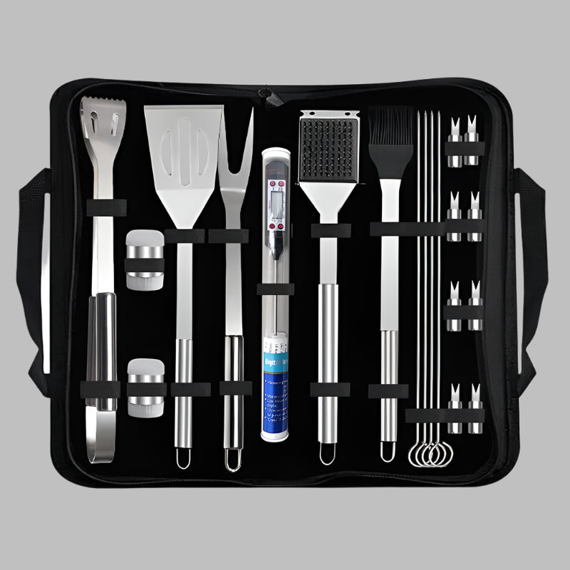 Detta BBQ-verktygsset är en utmärkt farsdagspresent för grillentusiasten. Det är ett mångsidigt och praktiskt tillägg till alla matlagningsupplevelser utomhus.