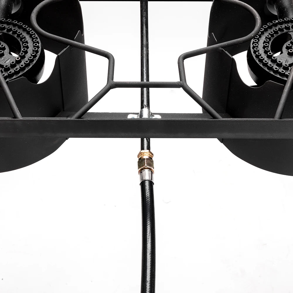 Denna kraftfulla dubbelbrännare, utrustad med ett gjutjärnshuvud, ger en jättestor BTU på 150 000. Och den kan justera eldkraften för att göra din kock mer utsökt. Den är lämplig för olika typer av kastruller på grund av brännarfästet. Så du kan njuta av att laga mat utomhus med din familj för att ha en lycklig tid. Tveka inte, köp det bara.