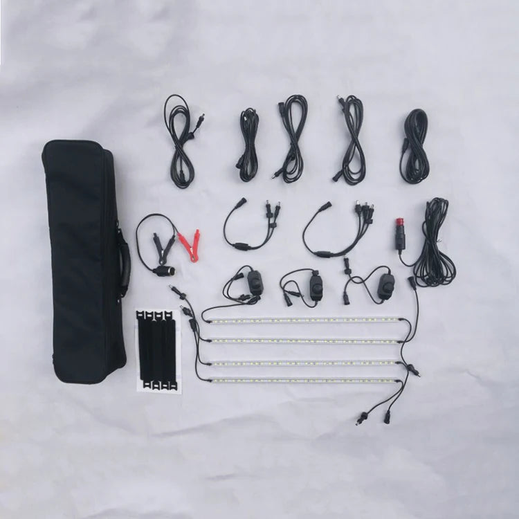 Driv dina lampor med en nätadapter, bilbatteri eller cigarettändare, detta paket har alla tillbehör du behöver. Inkluderat är: