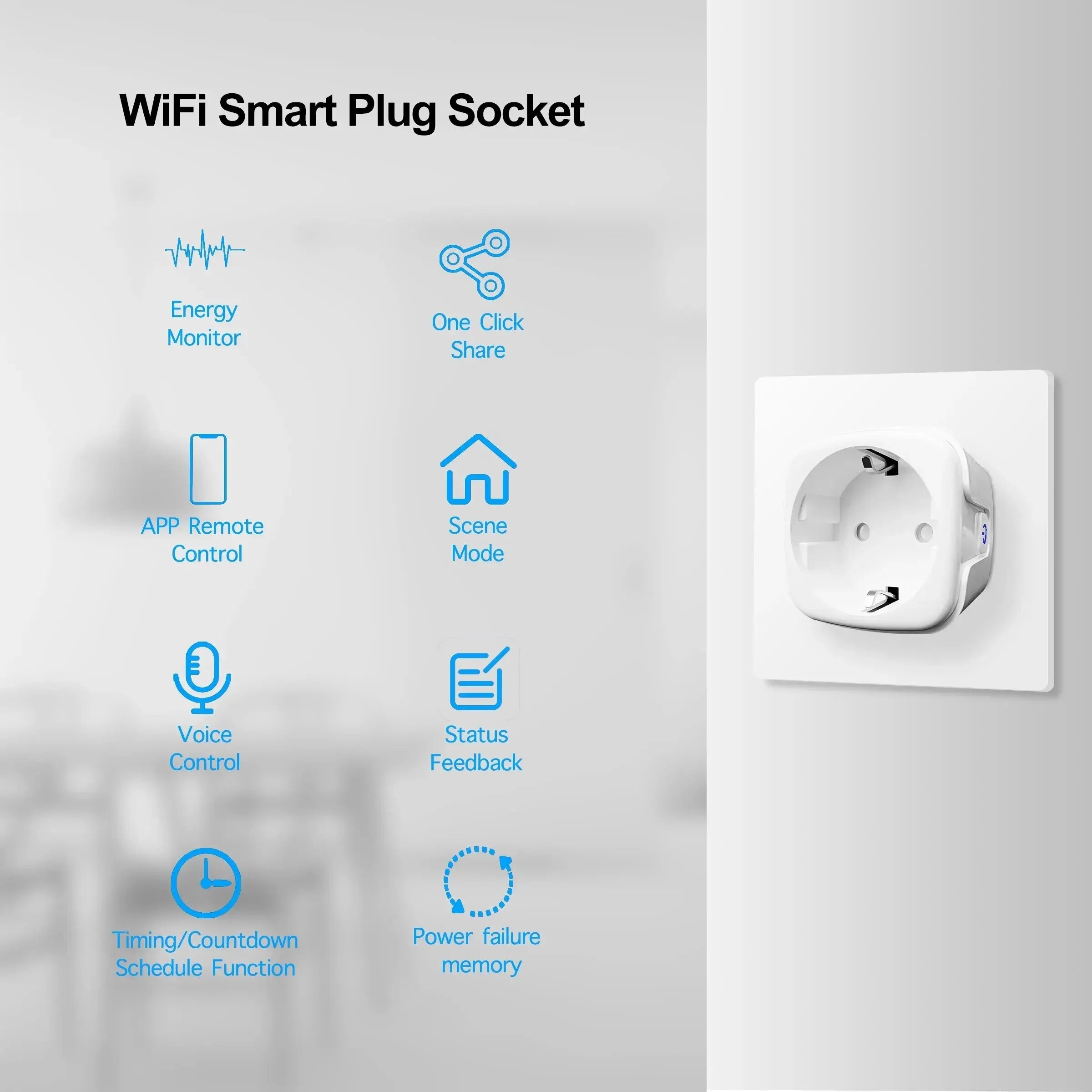 Genom att använda din smartphone eller surfplatta fjärrstyrs den smarta wifi-strömkontakten med gratisappen Smart Life eller TuyaSmart var som helst och när som helst. Lätt att styra dina hushållsapparater.
